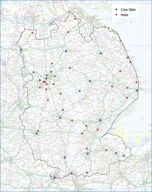 Currently In Lincolnshire the library service offers 15 core library sites and 34 community hubs providing community support and rural mobile library services.