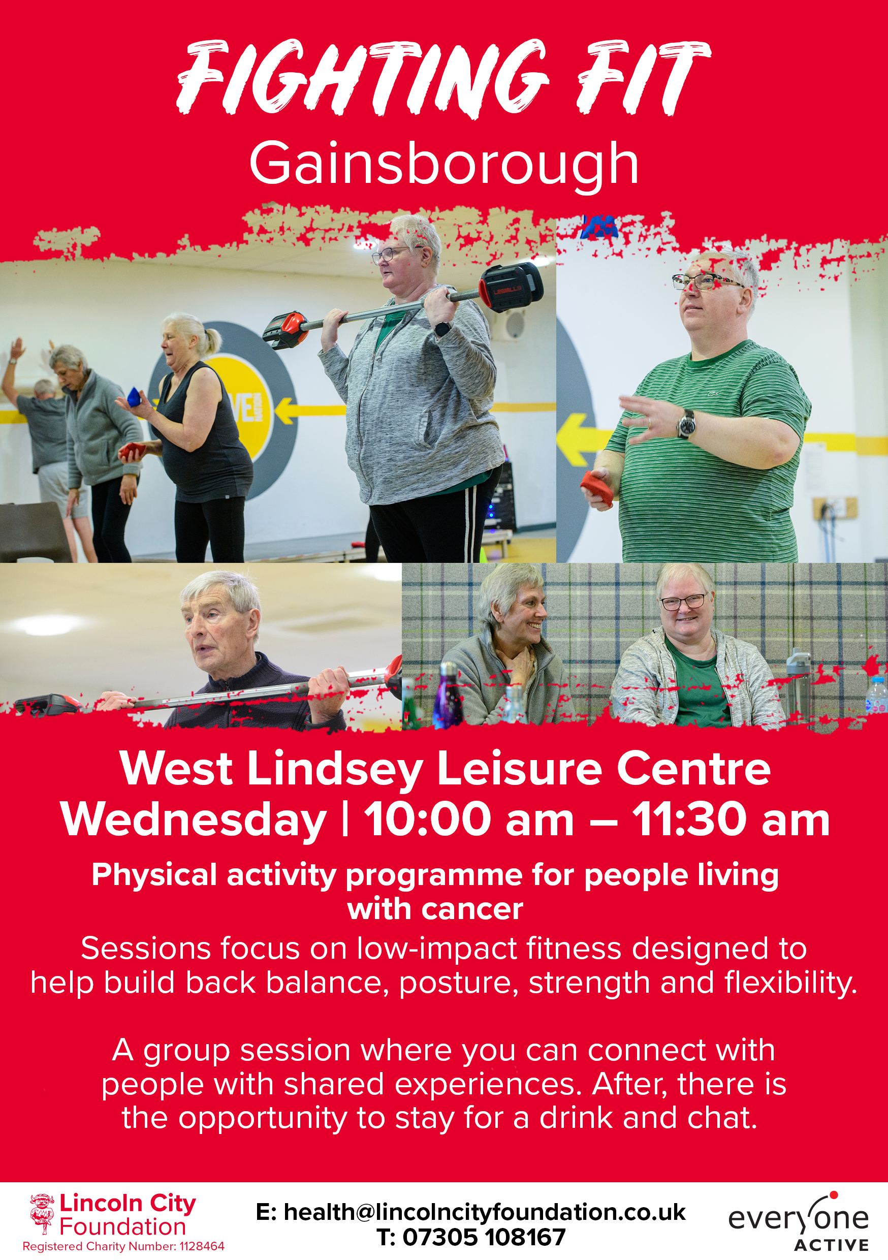 Fighting Fit focuses on low-impact fitness designed to help you to maintain or increase physical activity levels at a pace that suits you and supports you in the fight against cancer and long-term health conditions.