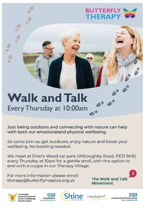 The Walk and Talk movement understands that connecting with nature can help with both emotional and physical wellbeing. Enjoy nature and come join in meet at Dion's wood on a Thursday at 10am for a gentle stroll towards a cuppa at the end.